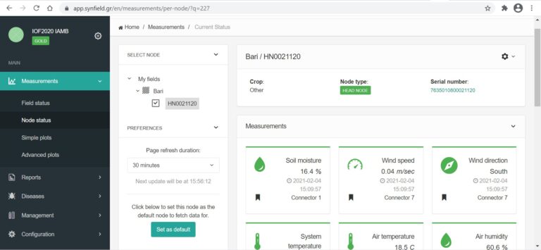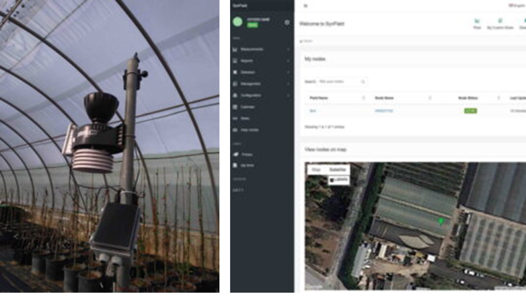 Through the SynField platform, the researchers of the “Mediterranean Agronomic Institute of Bari” are monitoring real-time crop and greenhouse conditions. While in the near future the station may additionally be used for monitoring external weather conditions and forecasts (wind and rain) for protecting and controlling the greenhouse environment. In addition, the researchers are able to evaluate various algorithms that are supported by the SynField platform, namely smart irrigation algorithms and disease forecasting models.
