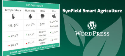 Synelixis now offers you the opportunity to view the climatic conditions of your crop, as these are being measured by your SynField node, in your wordpress webpage.